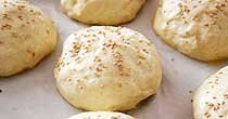 مرحله 5 - چانه ها را در سینی فر که چرب کرده اید با فاصله چیده و روی آنها را به دلخواه کنجد پاشده و برای 30 تا 45 دقیقه استراحت دهید تا چانه ها حجیم شوند. (بهتر است در مکانی استراحت دهید که رطوبت داشته باشد)