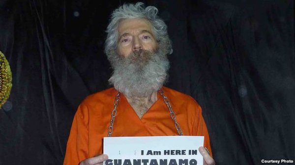 به گزارش خبرگزاری فرانسه، این تصاویر رابرت لویسنون را با مو و ریشی بلند و سفید نشان میدهد که لباسی نارنجی رنگ، مشابه آنچه زندانیان زندان آمریکایی گوانتانامو میپوشیدند، بر تن کرده است.