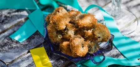 • زیتونها را ابتدا درون آرد غلطانده سپس درون تخممرغ و در نهایت درون پودر سوخاری بغلطانید.