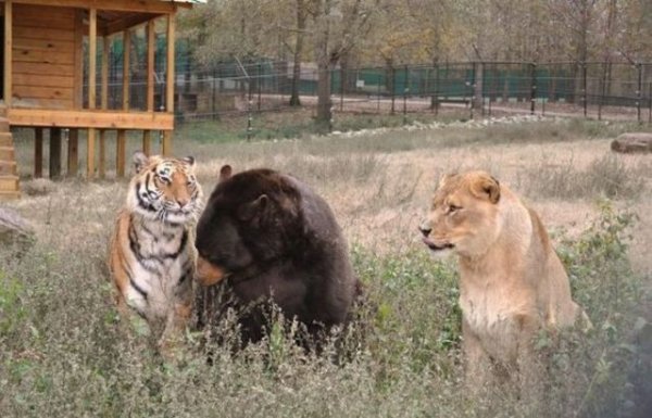 8 سال قبل پلیس به یک باند قاچاق مواد مخدر در آتلانتا , جورجیا حمله کرد و در محل زندگی سردسته بزرگ این باند , سه توله خرس , ببر و شیر را یافت و آنها را به مرکز نگاهداری و نجات حیوانات Noah's Ark سپرد. این سه توله کوچک دوران کودکی خود را با هم گذرانده و اکنون نیز به زندگی در کنار یکدیگر عادت کرده اند.