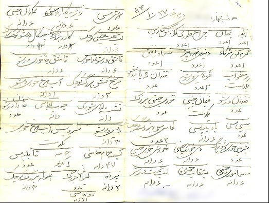 یک صورت جهیزیه در سال 1354