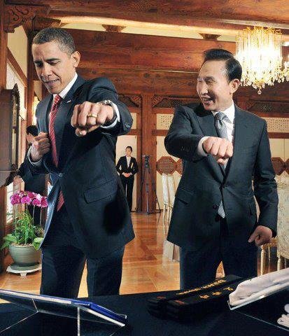 اوباما در حال انجام حرکات رزمی