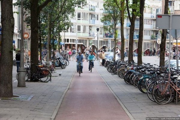 آمستردام توانسته است زیرساخت های خود را با فرهنگ دوچرخه سواری همراه کند. 400 کیلومتر برای ساخت مسیر ویژه دوچرخه سواری در کنار خیابان ها و ساخت پارکینگ هایی برای این وسیله نقلیه اختصاص یافته است.