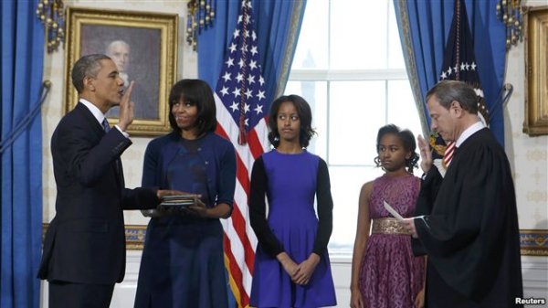 باراک اوباما، رئیس جمهوری آمریکا، روز یکشنبه اول بهمن ماه (۲۰ ژانویه) در مراسمی خصوصی در کاخ سفید سوگند یاد کرد و رسما دومین دوره ریاست جمهوری خود را آغاز کرد. مراسم عمومی ادای سوگند باراک اوباما روز دوشنبه در واشینگتن و در مقابل کنگره آمریکا برگزار می شود.