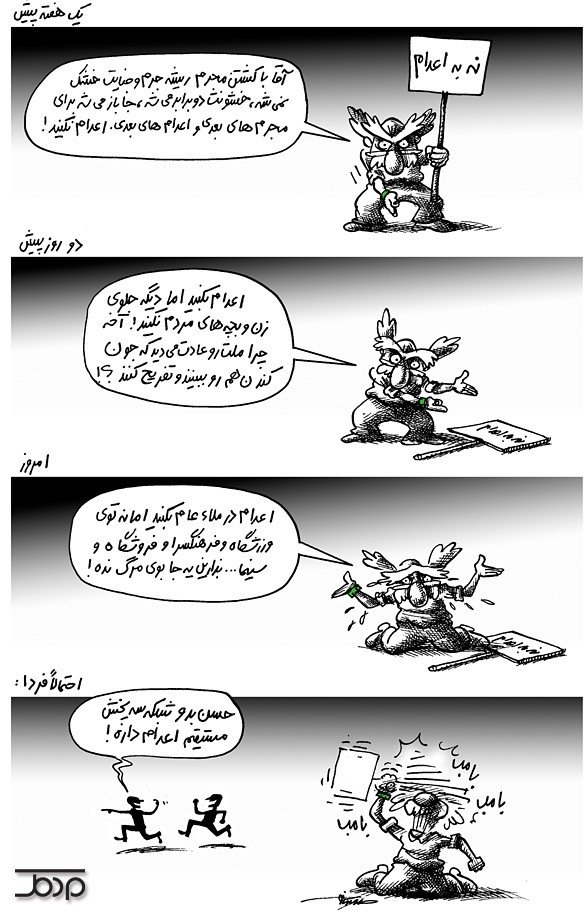 آدم میترسه یک روزایی اعدام در ملا عام به تجاوز جنسی در ملا عام تغیر کنه ،، هیچ چیزی از دین و مذهب غیر ممکن نیست ،، فردا یک آخوند فتوا میده که از این به بعد برای محکم کردن پایه های نظام و ترساندن دشمنان ولایت به منافقین و فتنه و محارب در ملا عام تجاوز جنسی میشه و بچه ها هم در این مساله استثنا نیستن ،، هم برای مشاهده و هم برای اجرای حکم ،،،،،