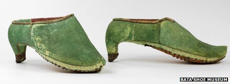 در قرن ۱۷ میلادی، کفش سمت چپ که احتمالا فرانسوی است، برای یک کودک طراحی شده بود. پاشنه چرمی این کفش، قرمز رنگ شده است تا امتیاز طبقاتی مالکش را به رخ بکشد