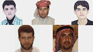 به ترتیب از بالا سمت راست: مختار آلبوشوکه، هادی راشدی، جابر آلبوشوکه و پایین از سمت راست: محمدعلی عمورینژاد، هاشم شعبانی به اعدام محکوم شدهاند