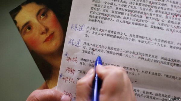 در این عکس، دان لی دانفورد، استاد زبانشناس، در حال آماده شدن برای خواندن بخشی از ترجمه رمان غرور و تعصب به زبان ماندارین در مراسم شهر باث است.