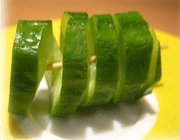 یک عدد چوب خلال از وسط آن رد می کنیم و با چاقو آن را به صورت پیچی برش می دهیم.