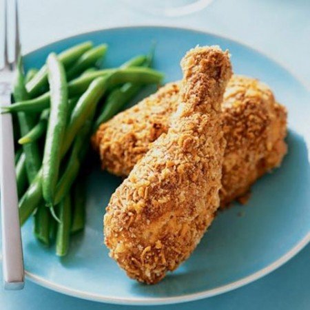 3.پس از این مدت، مرغ را ابتدا در ظرفی حاوی آرد گندم بغلتانید و خارج کنید. سپس تکه های مرغ آغشته به آرد را درون ظرفی که محتوی آب یخ است قرار دهید. بعد هر تکه از مرغ را در ظرفی که محتوی مخلوط آرد سوخاری و ادویه است بغلتانید. این کار را با حرکت دادن مرغ در ظرف آرد سوخاری انجام دهید تا گوشت مرغ به شکل پولک های ماهی درآید و در اصطلاح پولکی شود.