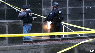 پس از این حادثه دهها مامور پلیس و اورژانس در ساختمان دادگاه جمع شدهاند.