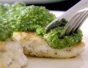 این غذا با سینهی مرغ بدون استخوان تهیه میشود و با سس اسفناج آن را مزهدار میکنیم.