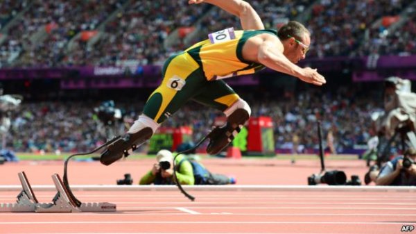 اسکار پیستاریوس از هر دو پا معلول است و نخستین ورزشکار پارالمپیکی است که سال گذشته در مسابقات المپیک دوشادوش ورزشکاران فاقد نقص عضو به رقابت پرداخت. پیستاریوس ۲۶ ساله با استفاده از دو پای مصنوعی تیغه مانند از جنس کربن که به زیر زانوهایش وصل میشود در مسابقات جهانی میدوید و به همین دلیل در میان دوستدارانش به «دونده تیغهای» معروف است.
