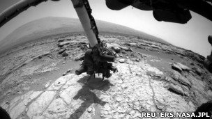 مته کیوریاسیتی در حال تنظیم موقعیت خود روی تختهسنگ موسوم به جان کلاین
