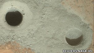 "کیوریاسیتی" در گودال "گیل" -حفره وسیعی در استوای مریخ- حفاری خود را انجام داد؛ سوراخی به عمق ۶.۴ و به عرض ۱.۶ سانتیمتر در تختهسنگی ایجاد و پودر خاکستریرنگ نرمی را استخراج کرد.
