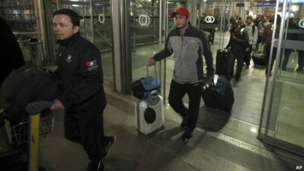 زکی جونز سرمربی تیم ملی کشتی آمریکا در هنگام ورود به ایران در فرودگاه امام خمینی.