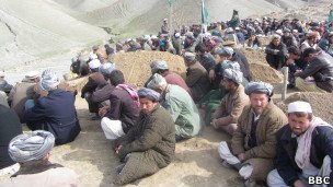 مراسم خاکسپاری اعدام شدگان در ولسوالی کلفگان در ولایت تخار