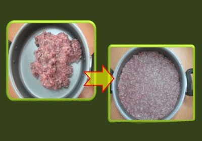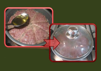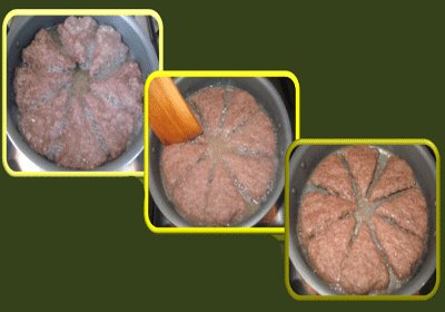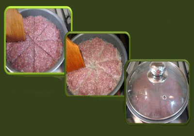 گوشت ورز داده شده را در یک ماهیتابه کوچک پهن میکنیم.