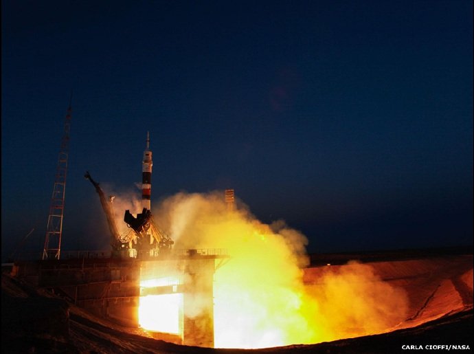 این عکس ها از کریس هادیفیلد، فضانورد کانادایی است که از ایستگاه فضایی بینالمللی می فرستد. این سومین سفر او به فضا، با فضاپیمای "سویوز TMA-07M" است. او نخستین فرد کانادایی است که پیاده روی فضایی انجام داده و همچنین نخستین کانادایی ای است که از سوی کشورش در ساخت شاتل فضایی نقش داشته است. عکس: پرتاب فضاپیمای سویوز از قزاقستان در ۱۹ دسامبر ۲۰۱۲.