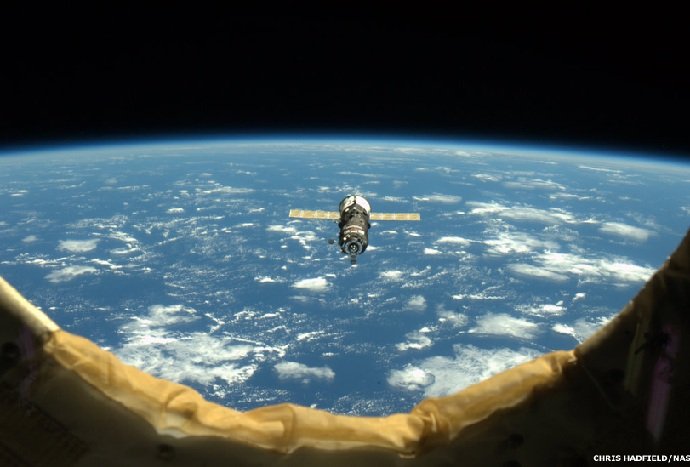 عکس های جالب او نمایی منحصر به فرد از کره زمین و کارهای علمی تیم مستقر در ایستگاه فضایی نشان می دهد. در این عکس یک وسیله نقلیه فضایی بدون خلبان، به ایستگاه فضایی نزدیک می شود.