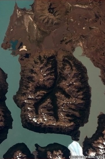 کریس هادیفیلد در توضیح این عکس می پرسد: همه ما درباره نقش یک انسان بر ماه شنیده ایم، ولی درباره نقش یک آدم در پاتاگونیا چطور؟ (پاتاگونیا منطقه ای در آمریکای جنوبی است.)
