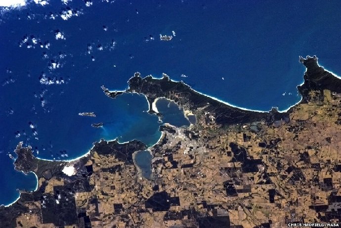 او می گوید که رنگ ها و بافت استرالیا، نمای آن را از بالا بسیار هنرمندانه می کند. عکس: منطقه King George’s Sound در استرالیا.