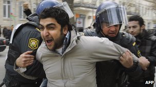 پلیس آذربایجان تظاهرات مخالفان دولت را سرکوب می‌کند