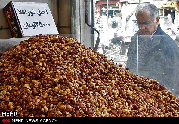 ببین تورو خدا این مغازه دارهای بیشرف رو!!!!!کوهی از آجیل رو جلوی مردم بدبخت، به معرض تماشا گذاشتن که یعنی : اولا، تو این مملکت قحطی نیست و همه چیز هست، اما کجاست پول و درامد که بشه خرید کرد؟ دوما حالا که آخوندا کشور رو به نابودی کشوندن، ما هم از این خر تو خری سؤ استفاده کرده و قیمت هارو میبریم به آسمون هفتم!!! گور پدر مردم ایران. هنر نزد ایرانیان است و بس!!!!!!!!!!!