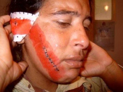 او به قاضی گفت: وقتی همسرم متوجه شد که من درخواست طلاق دادم، به خانه آمد، هنگامی که قصد وارد شدن به حمام را داشتم او ناگهان با دو تیغ به سمت من آمد و پس از اینکه گردن و دست من را زخم کرد با تیغ ابتدای نام خود را روی صورتم حک کرد.