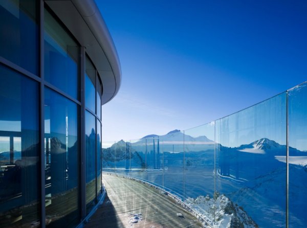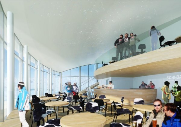 این کافیشاپ توسط کمپانی معماری Baumschlager Hutter طراحی شده و دارای سه تراس بیرونی تعلیق آزاد است که زیباترین نماها را از کوههای آلپ پیرامون خود ارائه میدهد.