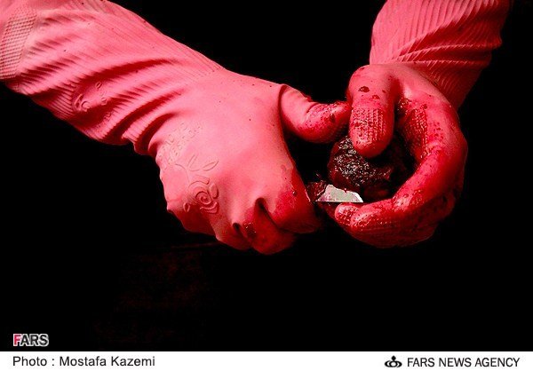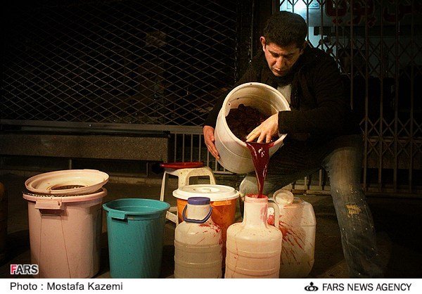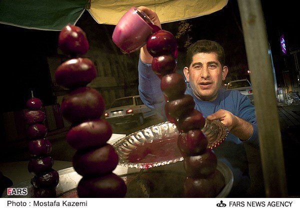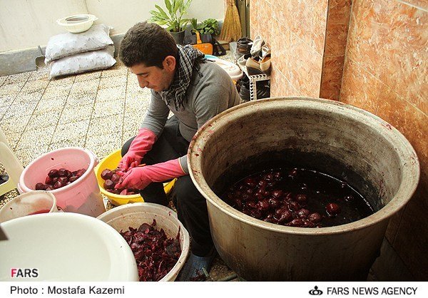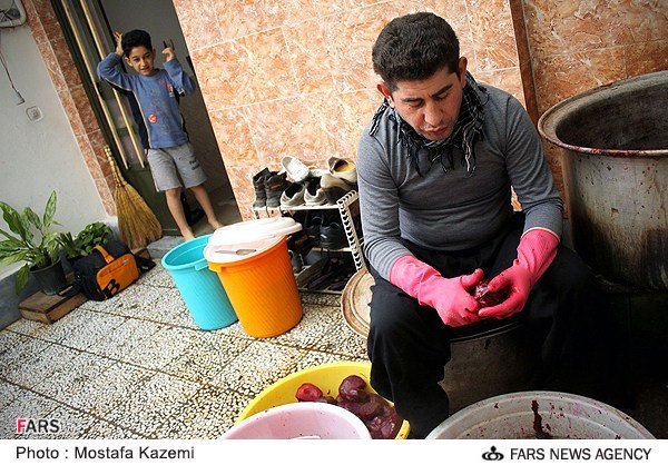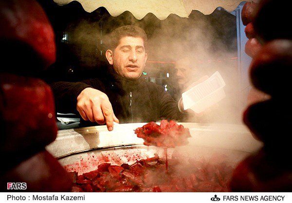عباس آقا در حال آماده کردن چغندر پخته«لبو»