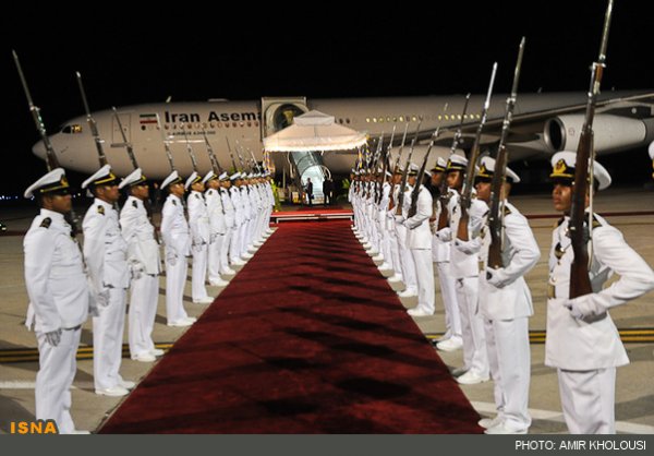 محمود احمدی نژاد برای حضور در مراسم تشییع جنازه هوگو چاوز رئیس جمهور متوفی ونزوئلا، وارد فرودگاه کارآکاس شد.
