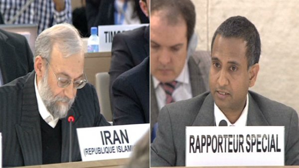 رئیس جلسه در پایان صحبتهای آقای لاریجانی، از شرکت کنندگان خواست شخص گزارشگر ویژه سازمان ملل را هدف اتهام قرار ندهند.