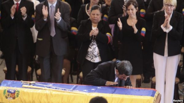 بوسه محمود احمدی نژاد بر تابوت هوگو چاوز