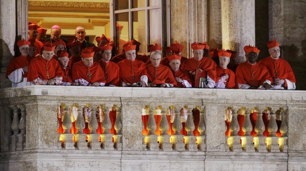 کاردینال ها به نخستین سخنرانی پاپ فرانسیس اول گوش میدهند (این لقبی است که کاردینال برگولیوی آرژانتینی برای خود برگزید)