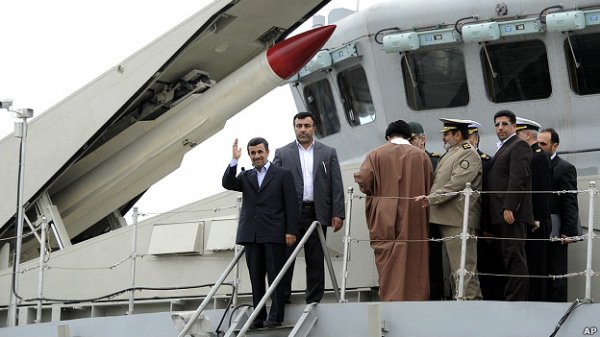 فیروزآبادی، رئیس ستاد مشترک نیروهای مسلح و سیاری، فرمانده نیروی دریایی احمدینژاد را همراهی میکردند