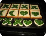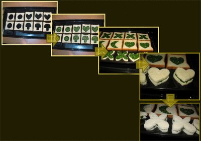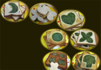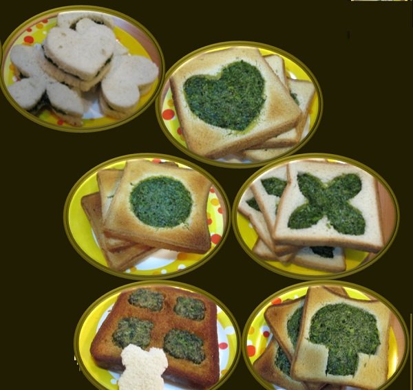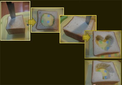 چند نان تست را روی هم قرار می‌دهیم و چاقو را به طور عمودی در نان‌ها فرو می‌بریم. سپس شکل‌های دلخواه از جمله: دایره، قلب، قارچ و غیره با چاقو در نان‌ها ایجاد می‌کنیم.