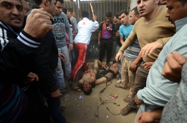 به گفته مقامهای امنیتی، شماری از مردم روستای 'محله زیاد' استان غربیه در شمال مصر، سعی داشتند دو مرد متهم را نجات بدهند اما توسط روستاییان دیگر عقب رانده شدند.