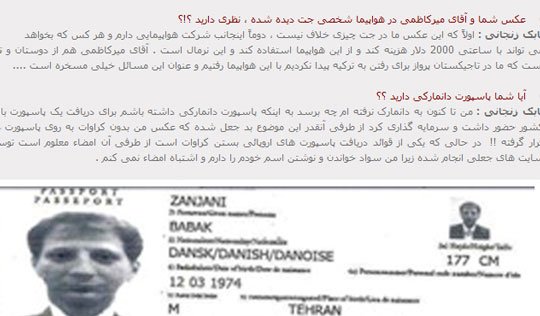 2- بابک زنجانی ادعا کرده تصویر منتشرشده توسط بازتاب از حضور وی در جت شخصی بهمراه سید حسن میرکاظمی مشهور به رعیت (از مفسدین اقتصادی و عوامل خودسر لباس شخصی که نقش گسترده ای در تخلفات سال 1388 داشته است)، اولا توسط خود وی در فیس بوک منتشر شده که مراجعه به صفحه فیس بوک بابک زنجانی در اینجا دروغ بودن این اظهارات را نشان می دهد.