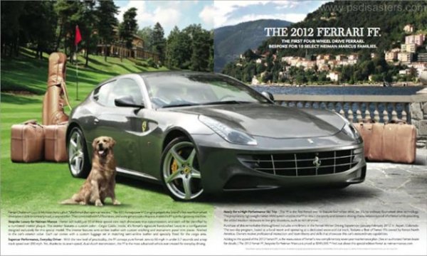 2. این تبلیغ ماشین فراری در نشریه ای به چاپ رسیده است. در نگاه اول، ظاهر خودرو جلب توجه می کند و پس زمینه زیبای آن. اما نگاه کنید به تصویر سگی که کنار ماشین است. باید پشت سگ روی بدنه ماشین دیده شود نه صورتش!