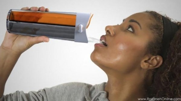 5. خانم ورزشکار دارد از بطری آب می نوشد و آن را کج کرده ولی معلوم نیست چرا آب درون بطری کج نشده است؟!