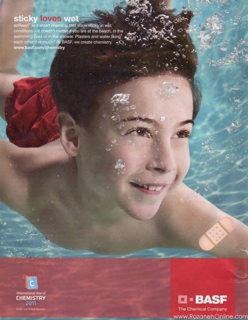 7. این تبلیغ یک چسب زخم ضدآب است؛ اما این چسب زخم را چقدر ناشیانه و تابلو روی دست این شناگر نوجوان قرار داده اند!