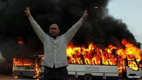 مخالفان اسلامگرایان حاکم، دو اتوبوس متعلق به اخوانالمسلمین را هم به آتش کشیدند.
