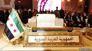 حدود دو هفته پیش، جلسه وزیران خارجه کشورهای عضو اتحادیه عرب هم کرسی سوریه در آن جلسه را به نمایندگان اعزامی مخالفان حکومت سوریه واگذار کرد و گفت که تا زمان برگزاری انتخابات آزاد و تشکیل دولت ملی در سوریه، ائتلاف مخالفان را نماینده مشروع و قانونی مردم آن کشور می داند.
