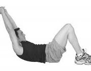شکم را منقبض کنید و شانه ها را از زمین بلند کنید و قفسه سینه را به پاها برسانید.