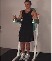 بر روی یک صندلی بایستید و دسته های صندلی را برای ثبات بالا تنه خود بگیرید.