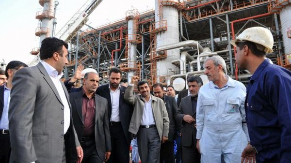 دولت احمدینژاد بهرغم وضعیت نابسامان اقتصادی، عملکرد خود را موفق میداند. بازدید احمدینژاد از پالایشگاه آبادان
