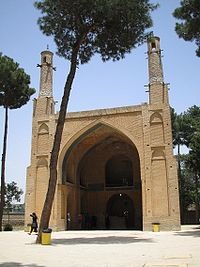شهرت این بنای کوچک با پهنای نه متری و بلندای هفده متری هر منارهاش به سبب تکان خوردن منارهای آن است. با تکان دادن یکی از منارهها مناره دیگر و کل ساختمان نیز تکان میخورد. ایوان بنا به سبک مغول ساخته شدهاست و از آن دوره کاشیکاریهایی هم دارد. ولی شکل منارهها نشان میدهد که آنها را احتمالاً در پایان دوره صفویه به ایوان اضافه کردهاند.