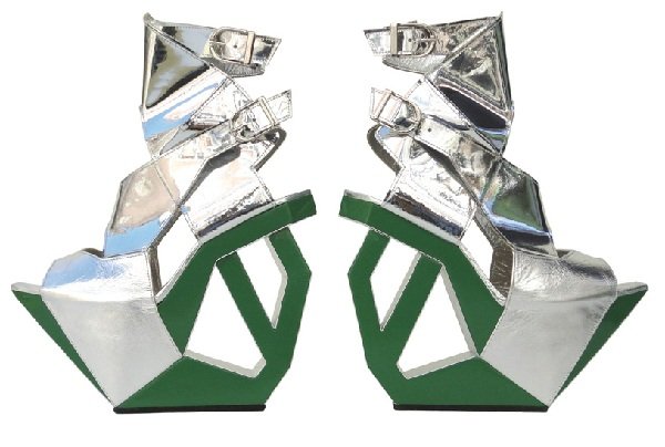 مدل ها بسیار گوناگون هستند؛ از کفش هایی که طرح آنها از معماری الهام گرفته شده است، تا نمونه هایی که از تم های اجتماعی بهره گرفته اند، مانند این سندل های جارویی، طراحی شده توسط سول آلونسو.