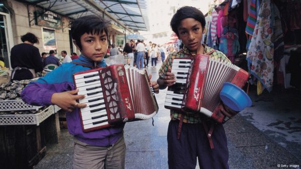 کودکان گدا در خیابانی در مادرید، پایتخت اسپانیا